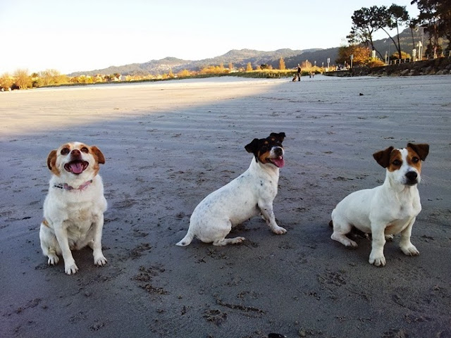We love the beach. Even in winter. Pinon, Luna and Herba have a great time there. Yesterday Lunan even got into the water, although it was very cold! but whatever just to retrieve her beloved ball 🙂 The beach we went, O Vao in Vigo (Galicia, Spain), has been featured on numerous occasions in the blog because it is our point of reference for adrenaline release in short winter afternoons. And it is because of its proximity, size and quiet (just the opposite in summer). If you go there, we advise going well wrapped, since as the sun reveals is comfortable, but when it goes away (about 6am) the cold is killer! We leave you a graphic example of yesterday beach afternoon. We hope you enjoy it.