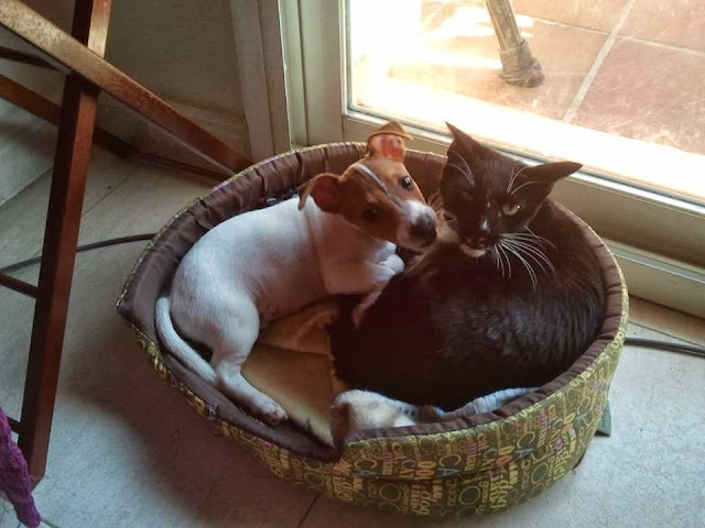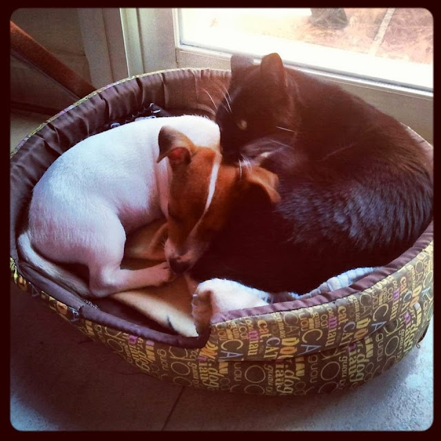 Éste es Milo, y es el Jack Russell que demuestra que perros y gatos pueden llevarse muy bien. No tenéis más que observar las fotos en las que se acurruca junto a su compañera, la gata Tulipa. Milo todavía es un cachorrito de casi 3 meses y nos comenta su dueño Pau que es muy bueno. ¡Bienvenido a Puro Terrier Milo! ¡Cómo nos gusta el amor entre diferentes especies animales!