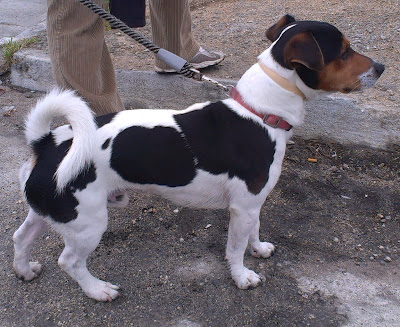 Hoy os traemos un nuevo Jack Russell Terrier que hemos encontrado en Vigo. Es un macho y se llama Tico. Como podéis ver es tricolor con marcadas manchas negras en su cuerpo. También nos ha llamado la atención la forma enroscada de su rabo.
