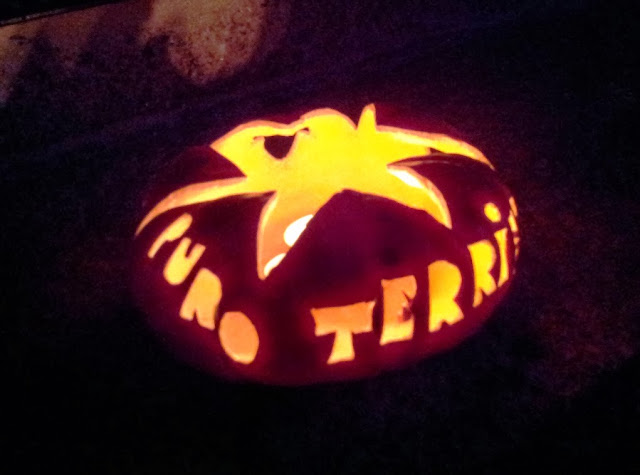 Tonight is the scariest night of the year … Halloween! In Spain, no doubt a tradition imported from the United States, but its every time more celebrated. The word Halloween is just the contacción of «All Hallows’ Eve«, ie «Eve of All Saints«, also called Night of the Dead. The origin of Halloween is the Celtic party called Samhain, which means «End of Summer» and it was regarded as the «Celtic New Year», which began with the dark station. In Puro Terrier we are ready for the meeting, and for this we have customized the traditional pumpkin with our name and some doggy drawings.