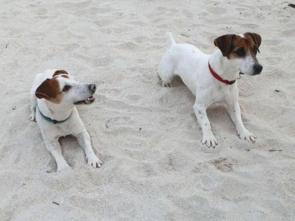 En nuestro habitual paseo de sábado por la playa del Vao (Vigo) nos encontramos una grata sorpresa: una preciosa Jack Russell Terrier de un año llamada Shiva. Obediente a su dueña 100%, y cómo no, ágil e incansable como todo Jack Russell. Pero esa no fue la principal sorpresa, sino que averiguando detalles de ella pudimos saber que nació en la misma camada que Laia. ¡Habíamos encontrado a una de las hermanas de Laia! Tuvieron la oportunidad de jugar un rato juntas, pero también con Luna y Herba. Shiva es algo más pequeña de tamaño que Laia y está comenzando el entrenamiento de agility, en el que es una alumna aventajada. ¡Bienvenida a Puro Terrier Shiva!