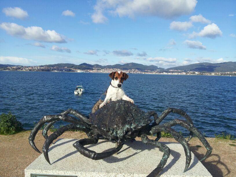 We know that we like the beach. But we also like the sea, no more, and especially good seafood out of the Galician sea. Here we can see Laia, posing with a huge crab and some equally large barnacles on the seafront in Bouzas, Vigo.